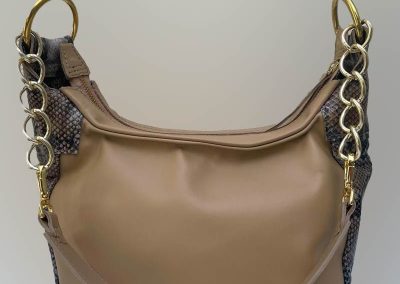Depuis, 8 ans je me suis intéressée au travail du cuir et après avoir suivi une formation auprès d’un maître cordonnier, j’ai commencé à réaliser des sacs à main. J’ai retrouvé dans la création des sacs à main les mêmes sensations que pour la peinture abstraite-coloriste, c’est-à-dire que je peux laisser libre cours à mon inspiration artistique avec les formes, les matériaux, les couleurs et les accessoires.